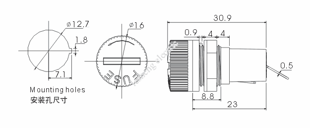· Mounting裝配方式: Fastening by nut用螺母旋緊固定