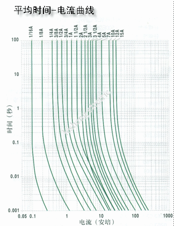| 目錄號 | 額定電流(安培) | 額定電壓(伏特) | 最高電阻值(歐) | 熔化熱能值I2t(A2Sec) |