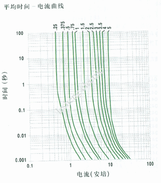 | 電流額定值百分比 | 在25℃時(shí)的斷路時(shí)間 |