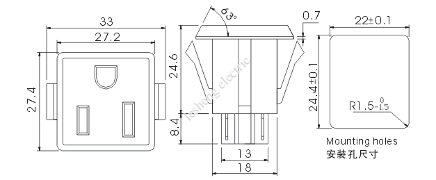 2. 電氣參數(shù)Operating data: 10A.15A, AC250V