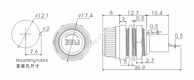 | For Fuse | Rated Amperage | Rated Voltage | Operating Power | Contact Resistance | Insulation Resistance | Dielectric Strength |