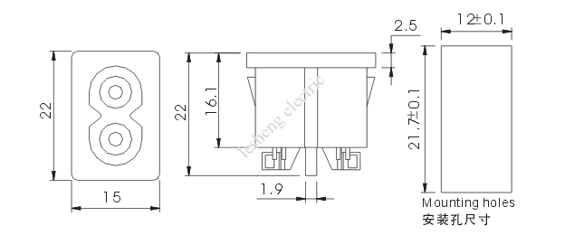 5. 裝配方式:插卡式,裝配板厚度0.8,1.0或1.2mm
